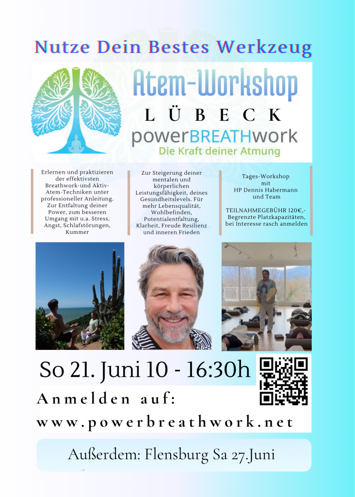 Eintägige umfassende Einführung in die aktive Atemarbeit mit Dennis Habermann und seinem Team.